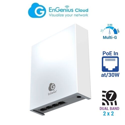 El punto de acceso Wi-Fi 7 2x2 ECW515, gestionado en la nube por EnGenius, ofrece velocidades de hasta 2900 Mbps (5 GHz) y 700 Mbps (2,4 GHz).